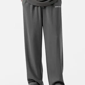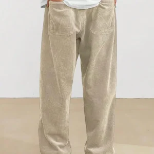 Mens Straight Leg Pants Long Solid Elastic Waist Casual Pants Loose Fit Going Out Pants with Pockets