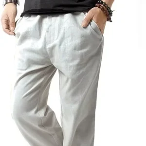 Men's Open Bottom Cotton Casual Sports Lightweight Drawstring Stretch Waist Summer Beach Pants