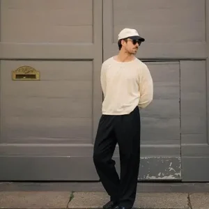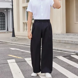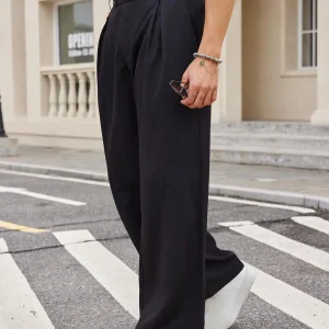 Men's Pleated High Waist Wide Leg Pants Loose Fit Casual Pants with Pocket