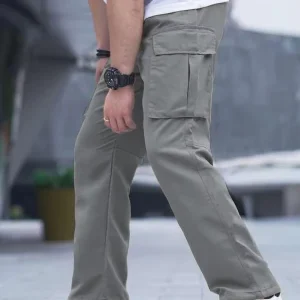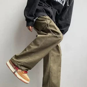 Mens Cargo Pants Drawstring Casual Hiking Pants Joggers Athletic Trousers Cotton Loose Straight Sweatpants for Men