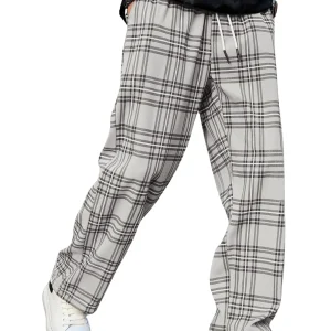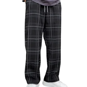 Men's Plaid Pants High Drawstring Waist Trouser Pants Loose Straight Leg Lounge Pants With Pocket