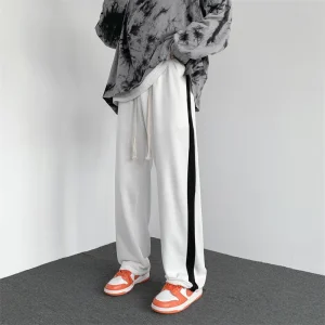 Pants for Men Sports Colorblocking Striped Casual Pants in the Youth Straight Loose Wide-legged