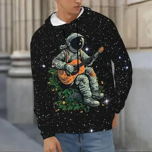 Men's Hooded Sweatshirt with Patterned Print, Long Sleeves, Pullover Style, and Pocket Design, Fashionable.