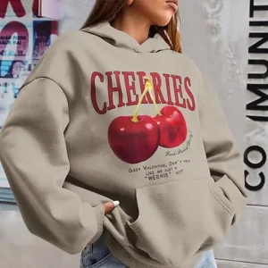 Mens Oversized Cherry Graphic Hoodies Vintage Cherries Printed Streetwear Sweatshirt Fleece Aesthetic Baggy