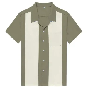 Men's 1950s Men's Clothing Cotton Men's Shirt Short Sleeved Retro 1950s Bowling Casual Button up Shirt