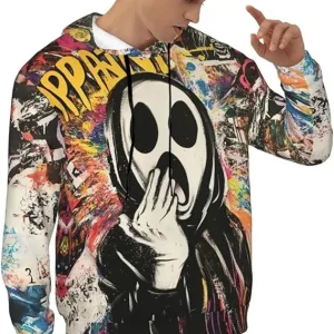 Fashion Men's Hooded Sweatshirt, Thick Hooded Sweatshirt, 3D Printed Men's Pattern Pullover Hooded Sports Shirt with Pockets