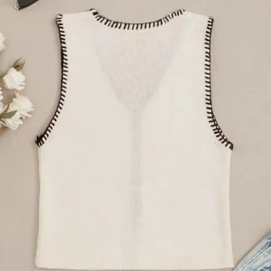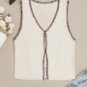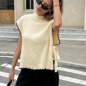 New Women's Patchwork Knit Vest Sleeveless High Neck Vest