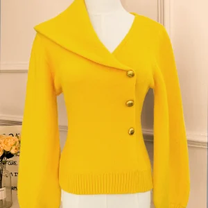 Elegant Autumnwinter Women's Fashion Casual Slim Yellow Sweater with Asymmetric Waist Lapel Side Buckles Perfect for Commuting