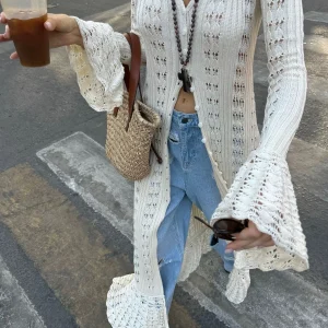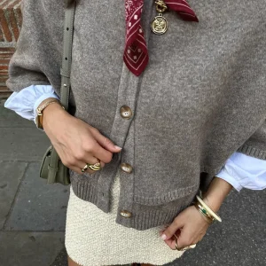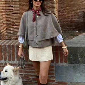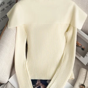 Luxury Women's Long Sleeve Crew Neck Knit Sweater Fashion-Designed Autumn Blank for Ladies WithOpen Mock Two-Layer Cape Cardigan