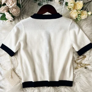 New Entry Women's Casual Fashion Twist Lapel Knit Short Sleeve Sweater Top