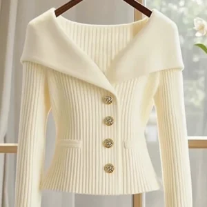 Fall and Winter Fashion Casual Vacation Women's Design Metal Button Long Sleeve Sweater