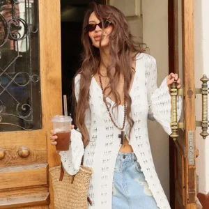 Anti-Pilling Anti-Wrinkle Women's Knit V Neck Long Cardigan Breathable and Print-Design for Autumn Season Girls' Sweater