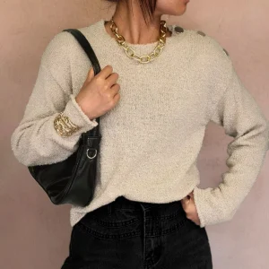 Fall and Winter Fashion Casual Vacation Women's Special Design Metal Button Long Sleeve Sweater