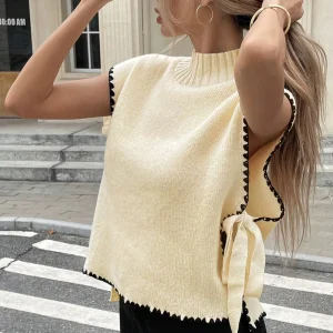 New Into the Fashion Women's Casual Tops, Clashing Color Wrapped in the Middle of the Open Knitted tank Tops