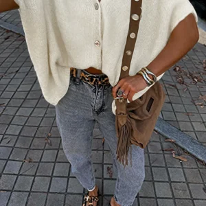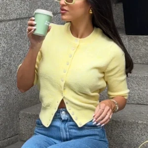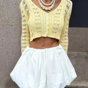 Women's New Fashionable Y2k Retro Knitted Cardigan Spring and Summer French Multi-button Wrap Top