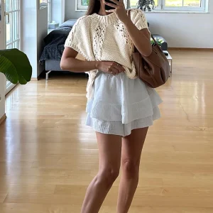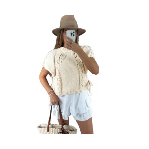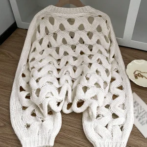 Women's Summer Chic Vintage Sweater O Neck with New Hollow Tether Casual Woven Knit Tops with Decoration