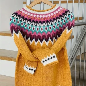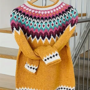 Women's Fashion Fair Isle Pattern Color Block Pullover Sweater Popular Thickened for Autumn and Winter