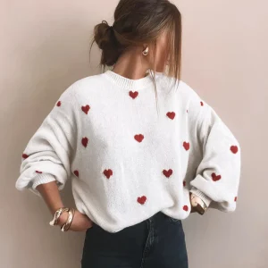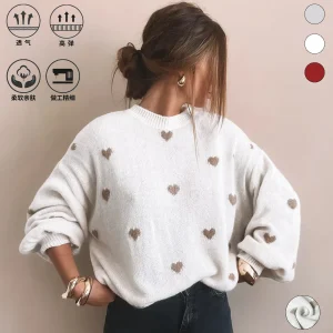 Women's Autumn and Winter Cute love Random Jacquard Loose Casual Fashion Round Neck Long Sleeve Pullover Sweater
